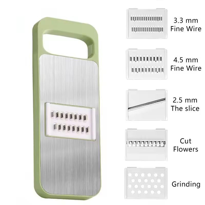 - نظام شفرات متعددة قابل للتبديل للتحكم الكامل — قم بالتبديل بين رؤوس التقطيع في ثوانٍ لتناسب المهمة: شرائح شيبسي رفيعة، بطاطس مقلية سميكة، بشر خشن، أو تقطيع جوليان ناعم (أعواد رفيعة). توضع وحدات الشفرات المستقلة خارج الإطار الرئيسي، لذا يمكنك إدخال ما تحتاجه فقط وقفلها بأمان. هذا النهج المعياري يقلل من التنظيف، ويسرّع التحضير، ويوفر سُمكًا متناسقًا لضمان طهي متساوٍ ونتائج مقرمشة في كل مرة.