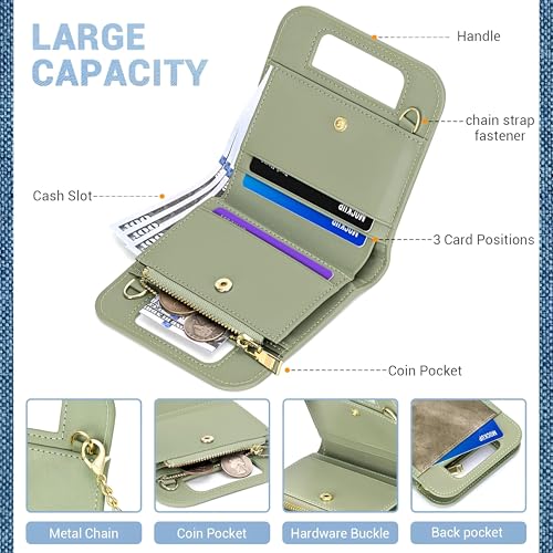 Generic - Compact Wallet - Small RFID blocking bifold design with secure zipper pocket, stylish handle and shoulder chain for women and girls fashion daily use (color 4)