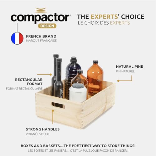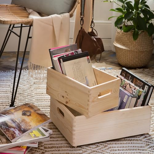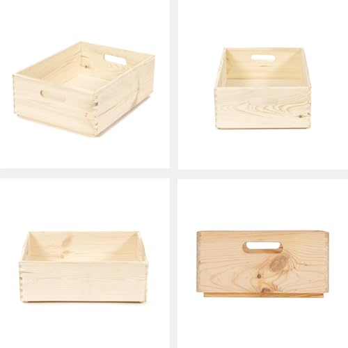 Compactor - صندوق تخزين كومباكتور الخشبي مع مقابض من خشب الصنوبر المزخرف غير المصقول وغير المعالج للحرف اليدوية والهدايا والتخزين ألعاب قابل للتخصيص أدوات للذكريات مقاس M بني فاتح