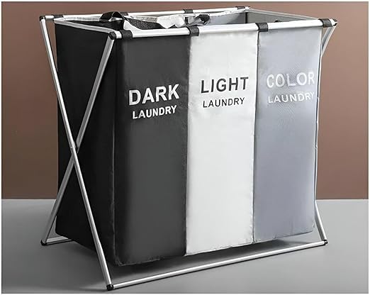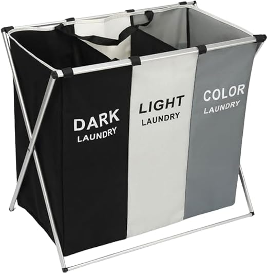 Generic - منظم ملابس بمساحة تخزين - سلة غسيل قابلة للطي، منظم ملابس بثلاث مساحات تخزين، سلة تخزين الغسيل