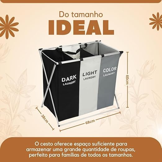 - القياسات: بارتفاع 24 انش وطول 27 انش وعرض 15 انش، توفر السلة مساحة كافية لتخزين كمية كبيرة من الملابس.