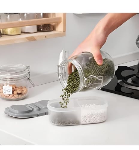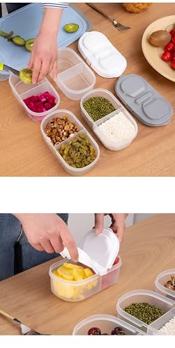 - تتميز حاوية تخزين الطعام المبتكرة هذه بتصميم مزدوج يسمح بتخزين عنصرين منفصلين في نفس الوقت. يفتح بذكاء من كلا الجانبين، مما يضمن بقاء محتويات حجرة واحدة دون إزعاج أثناء الوصول إلى الجانب الآخر. هذه الوظيفة مثالية لتنظيم مجموعة متنوعة من الأطعمة، وتعزيز الراحة في إعداد الوجبات أو الوجبات الخفيفة، وتعزيز تجربة المستخدم بشكل عام.