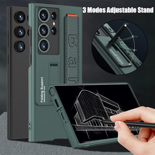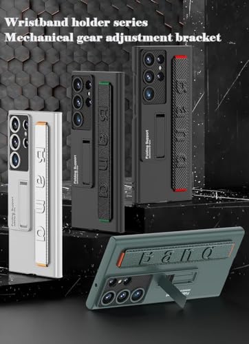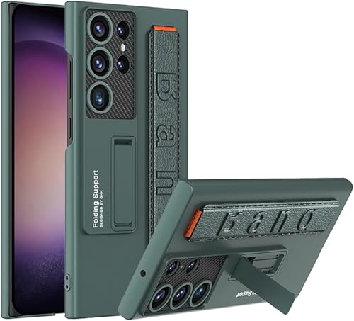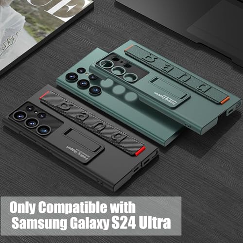 ELMO3EZZ - جراب متوافق مع سامسونج جالاكسي S24 الترا حزام يد مرن ومسند قابل للتعديل معصم رفيع للغاية مضاد للانزلاق ومضاد للصدمات لهاتف اخضر بلاستيك