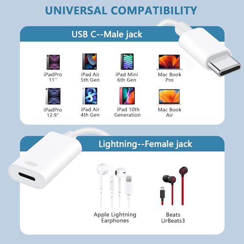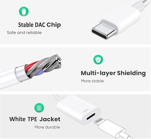 Generic - محول سماعة أذن دونجل USB نوع سي ذكر إلى أنثى لايتنينج مع بيانات الشحن لآيفون 16 15 بلس برو ماكس واي باد برو اير ميني ماك بوك
