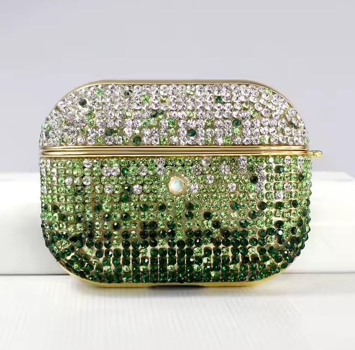 ELMO3EZZ - جراب حماية صلب مقاوم للصدمات وعلبة شحن مزينة بحجر الراين للبنات والنساء متوافق مع سماعات آبل ايربودز 4 لون أخضر متدرج.
