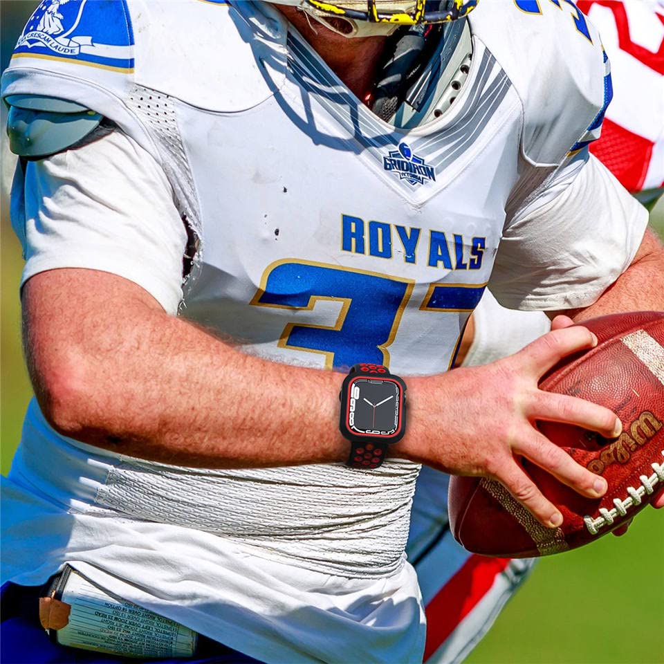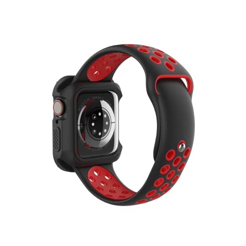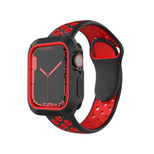 Generic - سوار ساعة رياضي بتصميم عسكري ممتص للصدمات متوافق مع ساعة ابل 45 ملم 42 ملم مع حافظة واقية، سوار متين للرجال لساعة ابل اس اي واي ووتش سلسلة 8 7 6 5 4 3 2 1 (اسود واحمر)