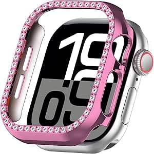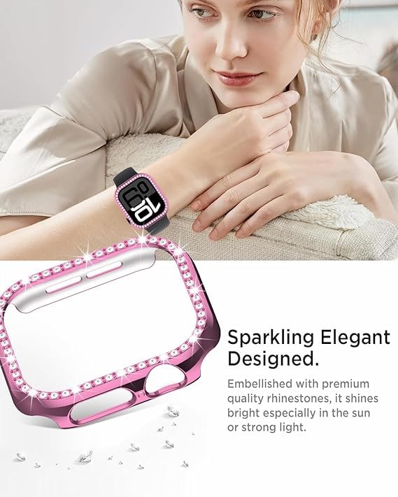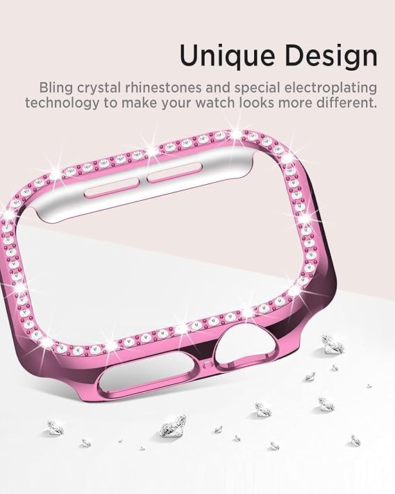 Generic - جراب حماية مرصع بحجر الراين اللامع متوافق مع ساعة آبل 42 ملم سيريز10، جراب واقي شاشة بإطار ممتص للصدمات للنساء والبنات (بينك)
