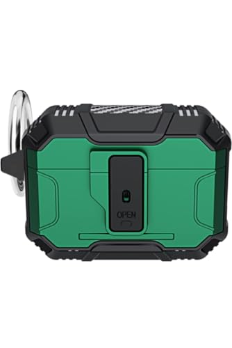 Generic - حافظة حماية بقفل متوافقة مع سماعات ايربودز 4 مع خاصية الغاء الضوضاء النشطة مع سلسلة مفاتيح، غطاء حماية متين رائع مضاد للصدمات متوافق مع ايربودز 4 (اخضر)