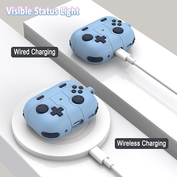 Generic - جراب حماية ايربودز الجيل الرابع مع طقم تنظيف، جراب حماية بتصميم جهاز تشغيل ألعاب الفيديو الرقمية الكلاسيكي محمول باليد من السيليكون الناعم لأجهزة ابل ايربودز 4، (أزرق، ايربودز 4)