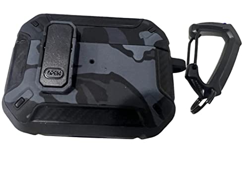 Generic - جراب حماية متوافق مع سماعات ايربودز برو 2019 مع قفل أمان بتصميم مطور، أسود مموه، بولي يوريثين اللدن بالحرارة بولي كربونات