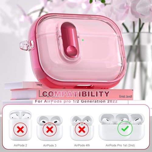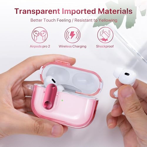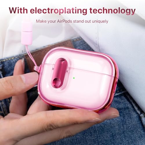 ELMO3EZZ - جراب متوافق مع سماعات ايربودز برو الجيل الثاني/الاول للنساء مع قفل امان، مصنوع من البولي يوريثين الحراري الناعم مع حبل قصير، متوافق مع ايربودز برو الجيل الثاني/الاول (زهري بالكامل)