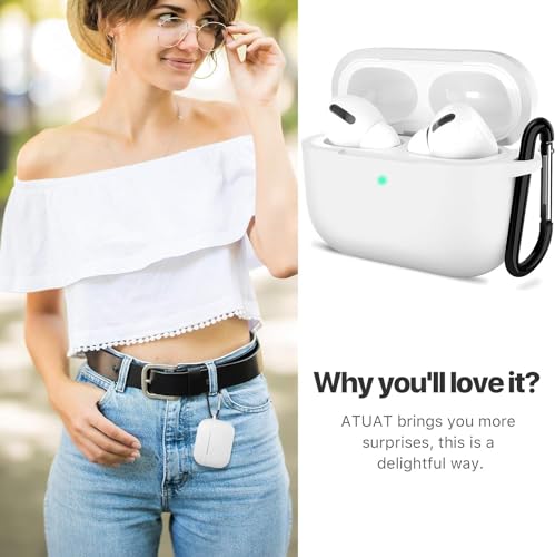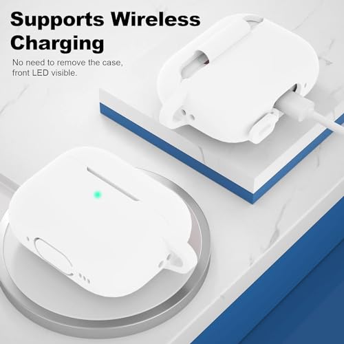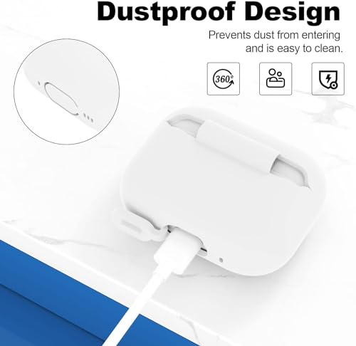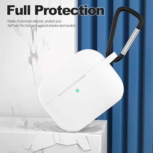 ELMO3EZZ - جراب حماية متوافق مع سماعات ايربودز برو الجيل الثاني من الموعز اكسسوارات جلدية واقية السيليكون سلسلة مفاتيح للنساء والرجال لابل 2 2022 اضاءة LED امامية مرئية - ابيض المعز