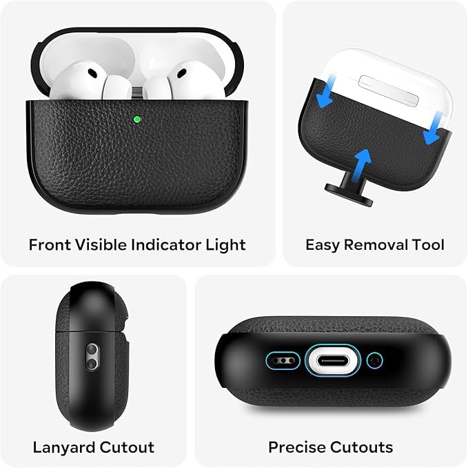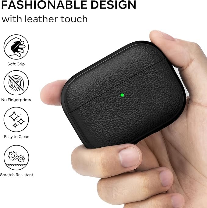 ELMO3EZZ - جراب حماية متوافق مع سماعات ايربودز برو 3 (2025)، غطاء واقي من البولي يوريثين الحراري مقاوم للصدمات مع سلسلة مفاتيح، مصباح LED امامي مرئي، لسماعات ايربودز برو الجيل الثالث (اسود)