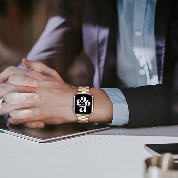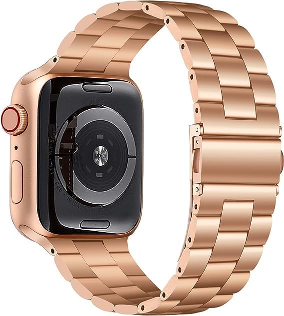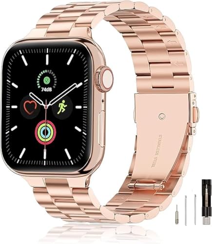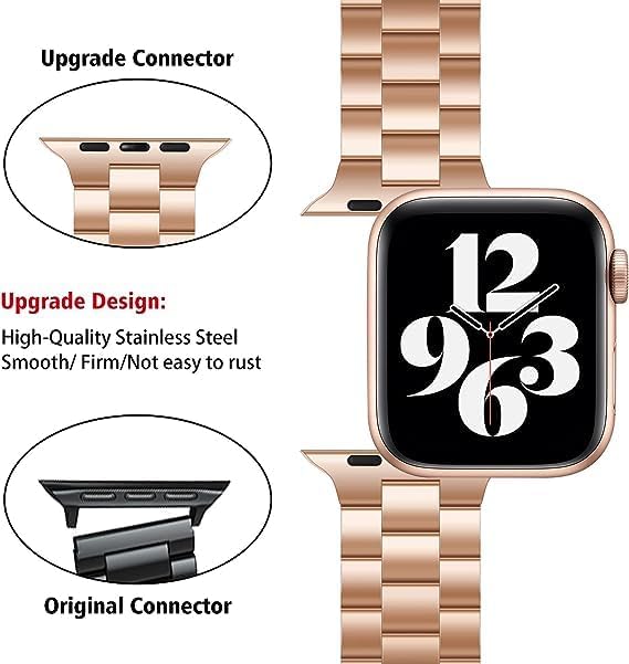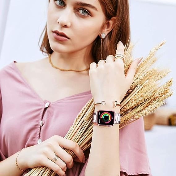 Generic - متوافق مع سوار ساعة ابل 42 - 44 - 45 - 49 معدني بديل من الستانلس ستيل مرصع بحجر الراين اللامع لساعة للنساء ذهبي وردي