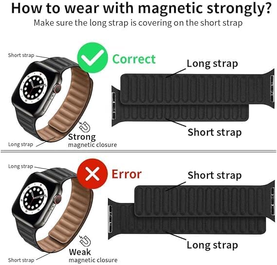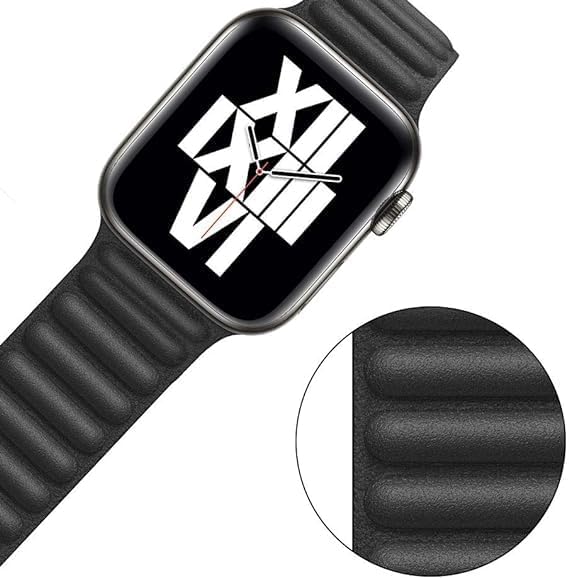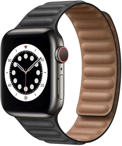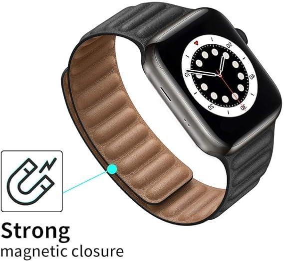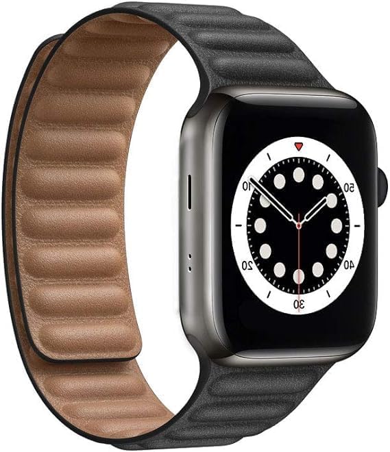 ELMO3EZZ - متوافق مع ساعة ابل سلسلة 6 5 4 3 2 1 سوار مغناطيسي متين من الجلد الطبيعي حجم الساعة 42 ملم 44 اسود- بني