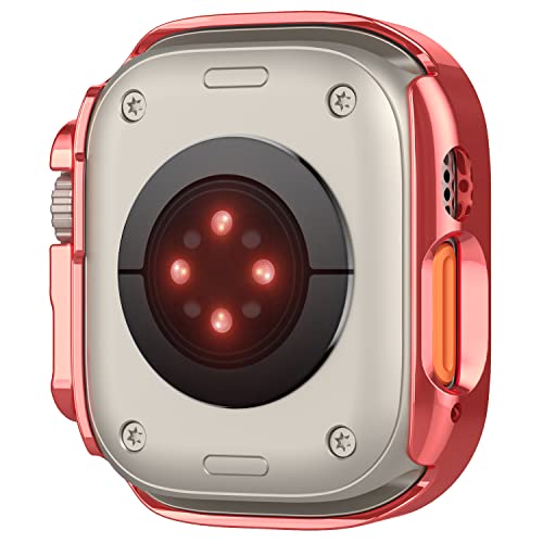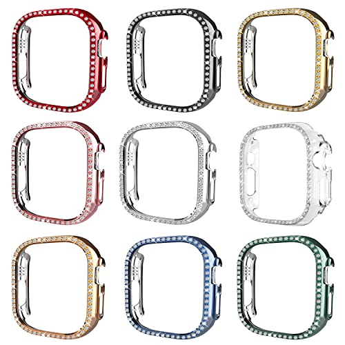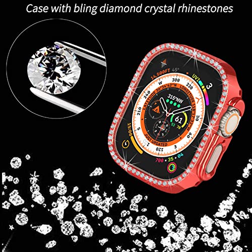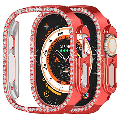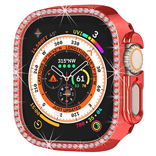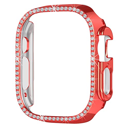 Yrzper - جراب حماية بلينج الماسي من بولي كربونات ممتص للصدمات لساعة ابل ووتش الترا 49 ملم، جراب حجر راين لامع وكريستال للنساء والبنات، اكسسوارات ساعة سمارت (احمر)