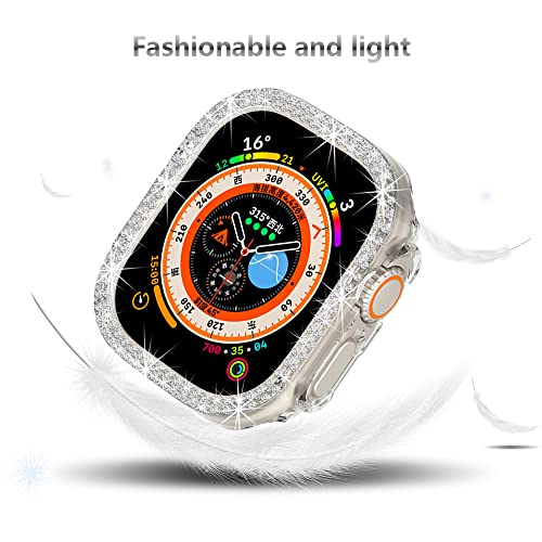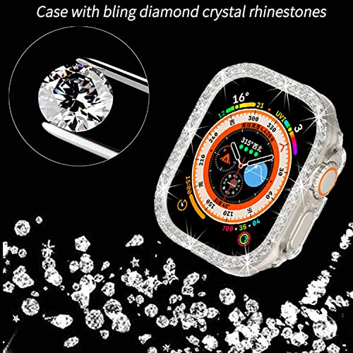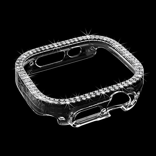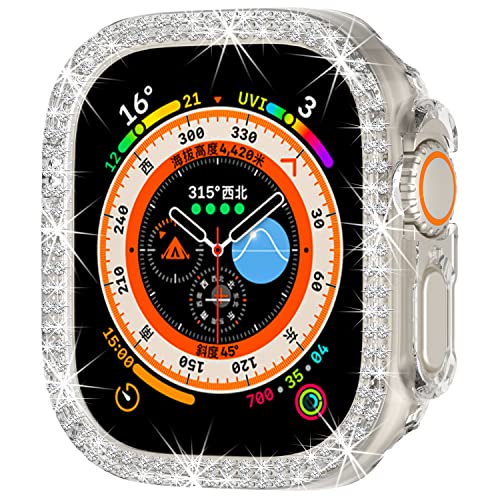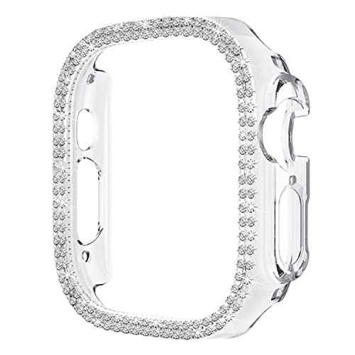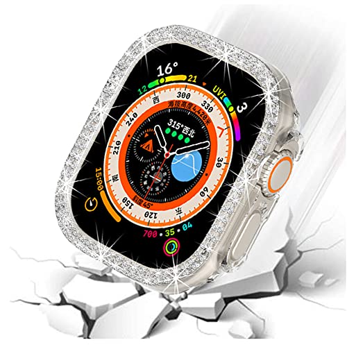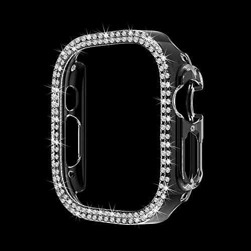 Yrzper - متوافق مع ساعة ابل الترا 49 ملم، هيكل مزدوج الصف من الماس اللامع من البولي كربونات، حافظات واقية للنساء والفتيات من حجر الراين الكريستالي اللامع (شفاف)
