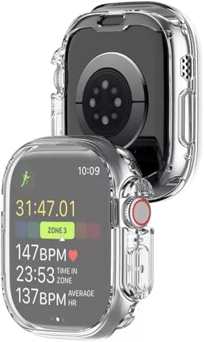 Generic - جراب من البولي يوريثين المقاوم للحرارة بتغطية كاملة مع اطار متوافق مع ساعات ابل ووتش السلسلة 8 الترا مقاس 49 ملم (شفاف)