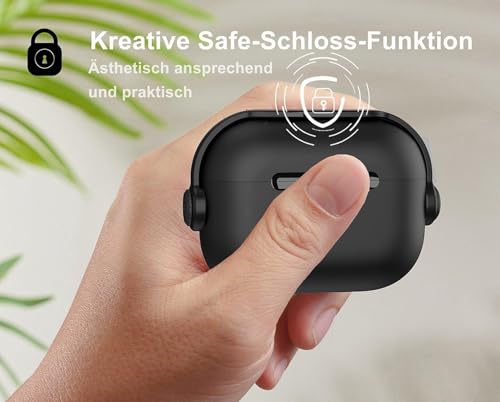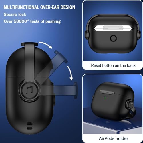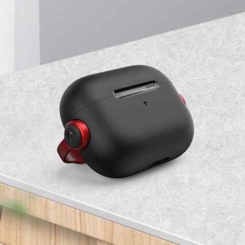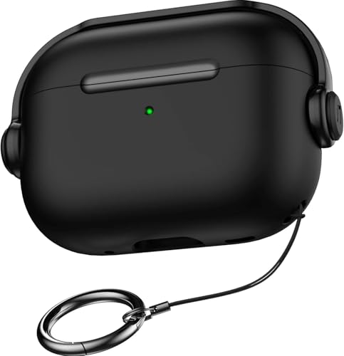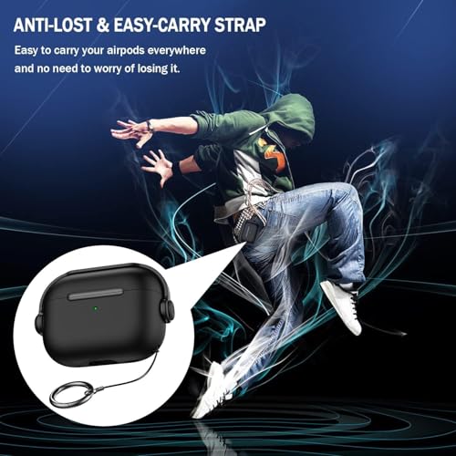 ELMO3EZZ - جراب حماية متوافق مع سماعات ايربودز برو 2 [مع غطاء للاغلاق] [مصباح LED امامي مرئي] حزام معصم] 2022 الجيل الثاني من الموعز اسود ألومنيوم
