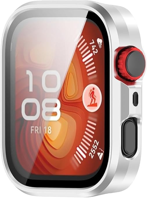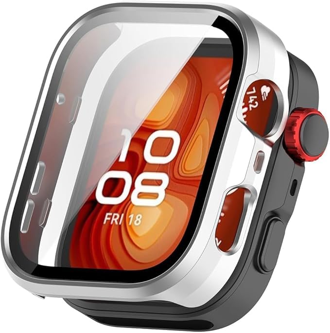 ELMO3EZZ - حافظة حماية صلبة من البولي كربونات لساعة هواوي فيت 4، مضادة للصدمات ومضادة للخدش رفيعة وخفيفة لحماية كاملة للحواف (لون فضي)