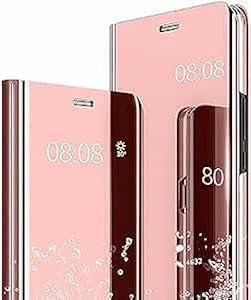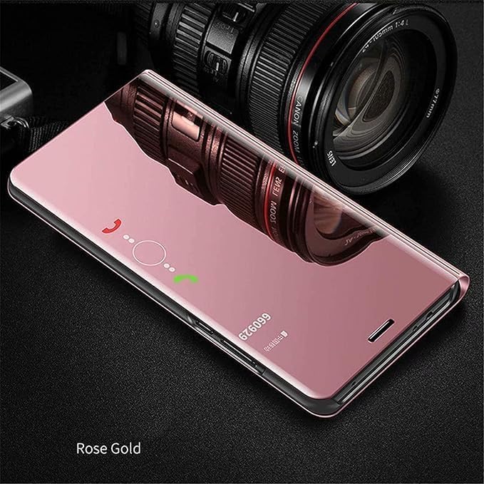ELMO3EZZ - جراب حماية جلد قابل للطي بتصميم عاكس شفاف بعرض بنمط S فيو مضاد للصدمات ومضاد للخدش مع مسند لموبايل هونر X9A (روز جولد)