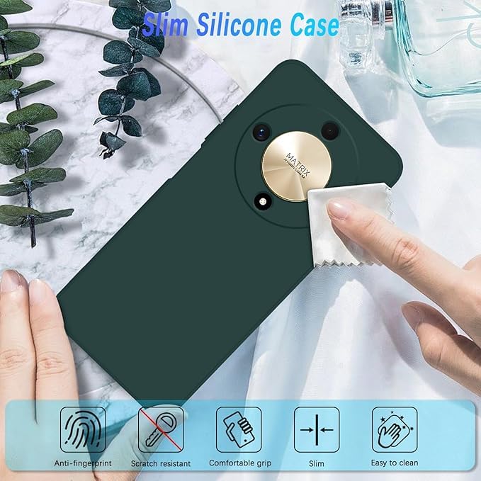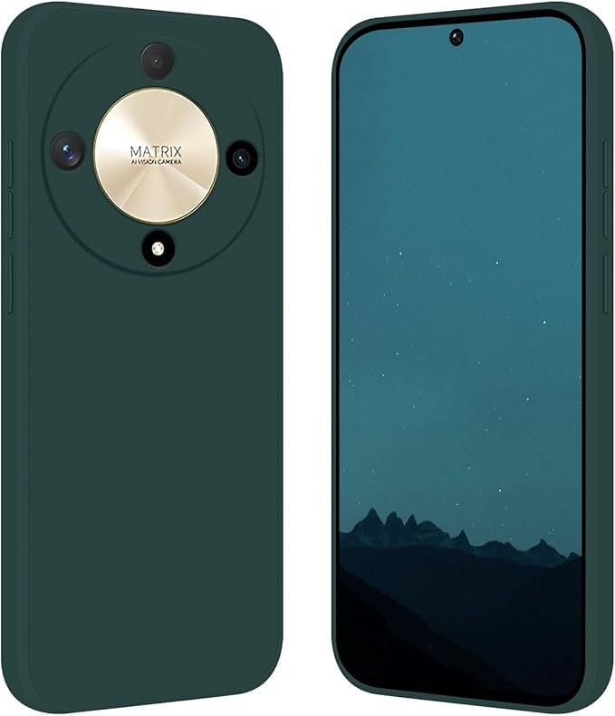 ELMO3EZZ - جراب حماية بتغطية كاملة ومضاد للصدمات من سيليكون سائل متوافق مع هونر X9b / ماجيك 6 لايت، جراب موبايل نحيف ببطانة ناعمة من الألياف الدقيقة مقاوم للخدش، (أخضر غامق)