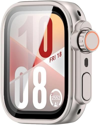 Generic - جراب وشاشة حماية لساعة هواوي فيت 4، غطاء كامل من البولي كربونات الصلب المقاوم للخدش من الزجاج المقسى متوافق مع ساعة هواوي فيت 4 2025 - (ستارلايت)