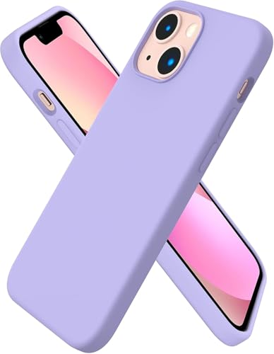 ELMO3EZZ - جراب موبايل متوافق مع آيفون 13 ميني، جراب رفيع من السيليكون السائل من 3 طبقات مغطى بالكامل من جل المطاط الناعم مع غطاء من المايكروفايبر، مقاس 5.4 بوصة (أرجواني فاتح)