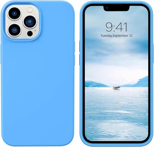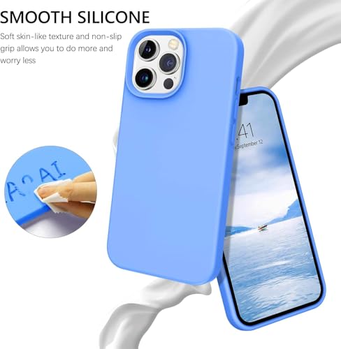 ELMO3EZZ - جراب موبايل متوافق مع موبايل آبل آيفون 13 برو ماكس 6.7 بوصة من السيليكون السائل المطاطي من جواجوا، جراب رقيق ببطانة من المايكروفايبر وسطح خشن مقاوم للصدمات، لون أزرق
