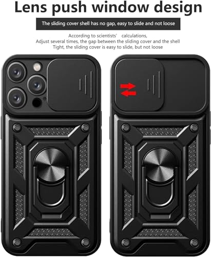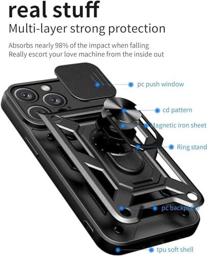 Generic - جراب حماية خلفي متوافق مع موبايل ايفون 15 برو ماكس غطاء منزلق للكاميرا وحامل حلقي مدمج مضاد للصدمات لموبايل فضي سيليكون
