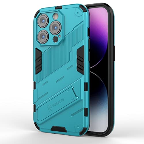 Generic - جراب موبايل بانك 2 في 1 مزود بحماية من الدرجة العسكرية مضاد للصدمات مصنوع من البولي كربونات والبولي يوريثين الحراري مع حامل مخفي لموبايل آيفون 15 برو ماكس (أزرق سماوي)
