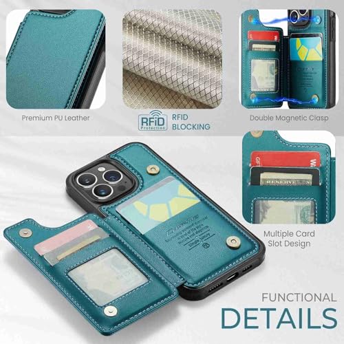 Generic - جراب حمايه مقاوم للصدمات وحامل للكروت والبطاقات متوافق مع IPhone 15 Pro Max مصنوع من الجلد الصناعي الفاجر Green حافظة بسيطة أخضر