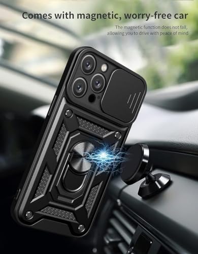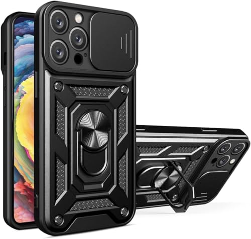 Generic - جراب خلفي حماية ممتازة متوافق موبايل Iphone 15 pro مع غطاء منزلق للكاميرا وحامل حلقي مدمج حافظة مضاد للصدمات لموبايل ايفون برو فضي سيليكون