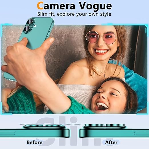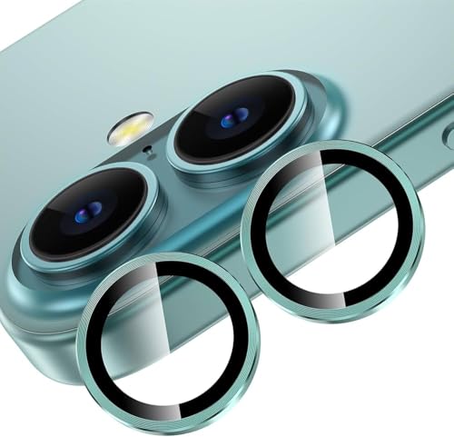 ELMO3EZZ - واقي عدسة الكاميرا متوافق مع آيفون 16 بلس/آيفون 16 - [موديل التصوير الأصلي] غطاء واقي لشاشة الكاميرا من الزجاج المقوى فائق الدقة HD ومقاوم للكسر، لون أخضر