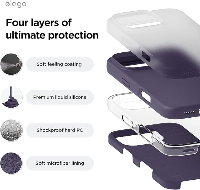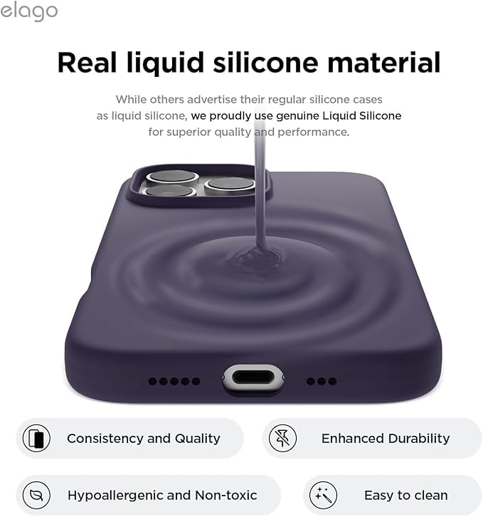ELMO3EZZ - جراب حماية من السيليكون السائل الممتاز واقي لكامل الهيكل ورفيع مضاد للصدمات ببطانة ناعمة من المايكروفايبر مضادة للخدش لموبايل آيفون 16 برو، مقاس 6.3 بوصة، أرجواني غامق