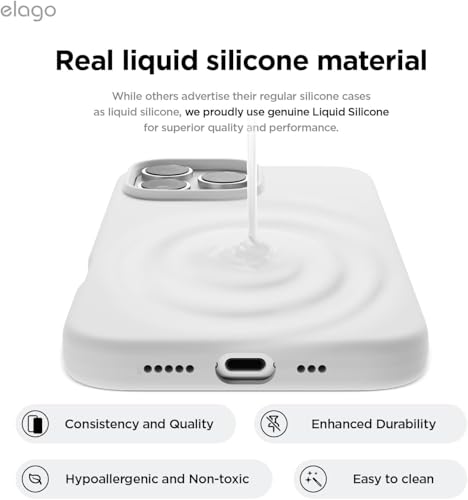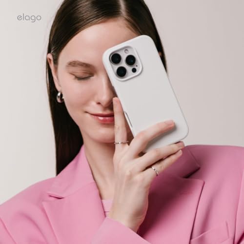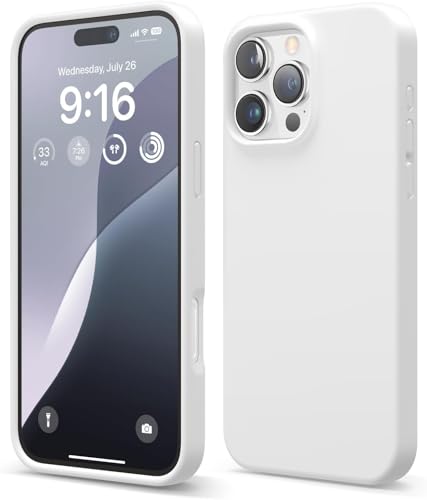 ELMO3EZZ - جراب حماية رفيع من السيليكون السائل الممتاز لكامل الجسم مقاوم للصدمات ببطانة ناعمة من المايكروفايبر مضادة للخدش متوافق مع موبايل آيفون 16 برو ماكس 6.9 بوصة، لون أبيض