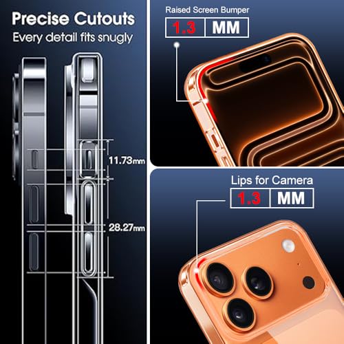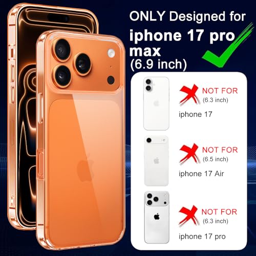 Nijiadi - جراب متوافق مع آيفون 17 برو ماكس وشاشة حماية وواقي عدسة الكاميرا شفاف كالكريستال مقاوم للصدمات بمعيار عسكري ولا يصفر مع الاستخدام