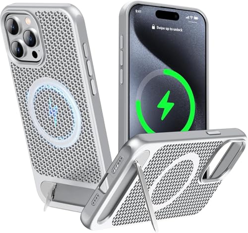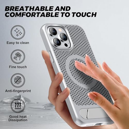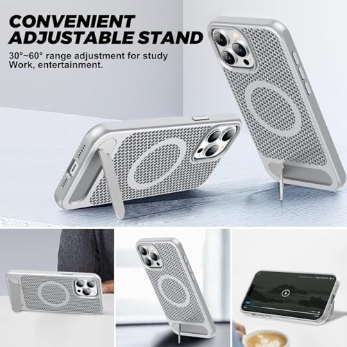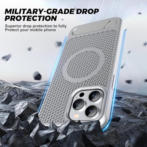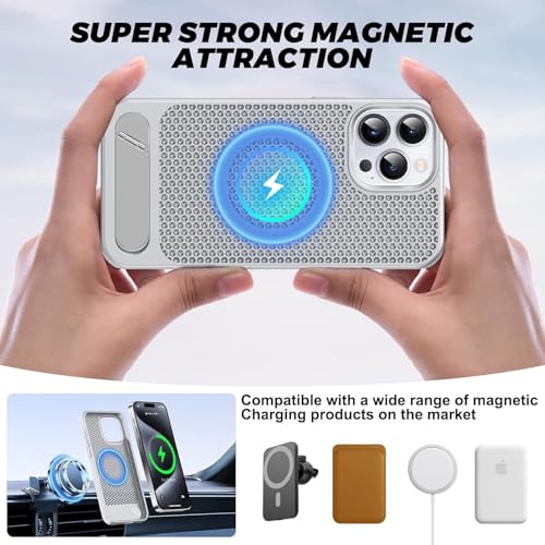ELMO3EZZ - جراب مغناطيسي لتبديد الحرارة لموبايل آيفون 16 برو ماكس، حماية من السقوط من كولينج اف مع مسند قابل للتعديل، مادة ايس ارمور الرائعة المطفية (فضي)