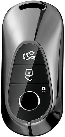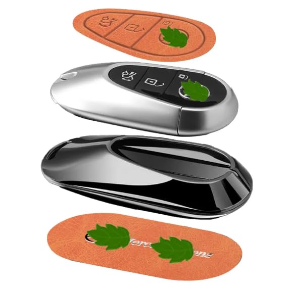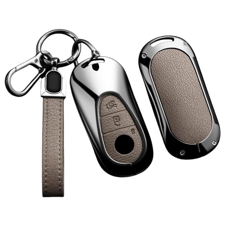 Generic - جراب مفاتيح بسلسلة غطاء معدني متوافق مع سيارة مرسيدس بنز فئة W206 - W223 2020UP- 【رمادي معدني x جلد】