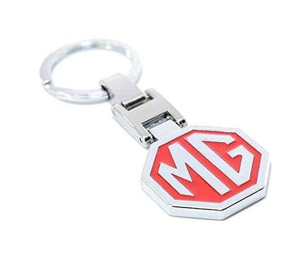 Generic - ميدالية وسلسلة مفاتيح سيارة مطلية نيكل بشعار على الوجهين - متوافقة مع سيارة ام جي ( اللون احمر) مناسبة لمفاتيح السيارة ومفاتيح العائلة
