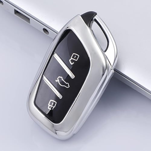 Generic - جراب ريموت متوافق مع سيارة MG – غطاء حماية من السيليكون المطلي بالكروم لمفتاح سيارات إم جي الذكية – متوافق مع موديلات MG 5، MG ZS، MG RX5 (لون فضي)