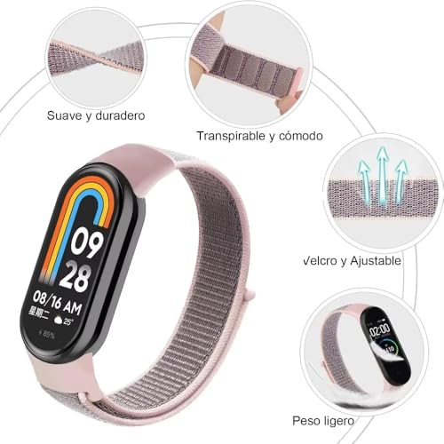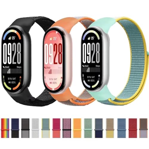ELMO3EZZ - سوار بديل متوافق مع مي باند 8/9 شاومي مي باند 10/9/8 - سوار نايلون قابل للتعديل مع مشبك إغلاق آمن للجيم والجري والاستخدام اليومي، سوار معصم بديل، ملحق لياقة بدنية