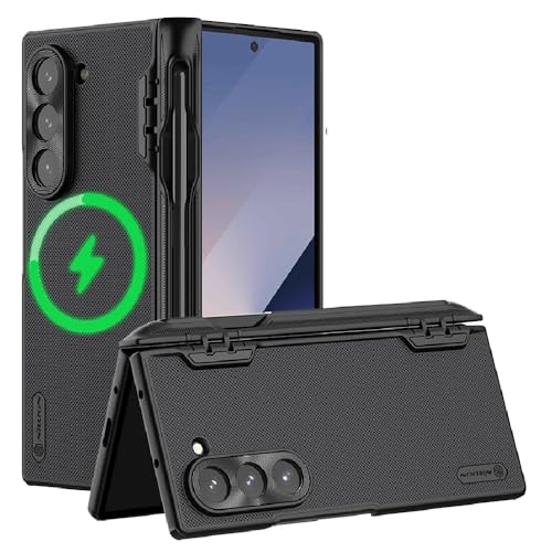 Generic - حافظة شحن لاسلكية مغناطيسية من نيلكين مع حامل قلم حماية بمفصلات رفيعة متوافقة سامسونج جالكسي زد فولد 6 اسود