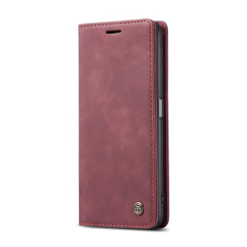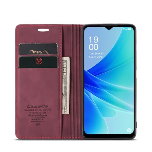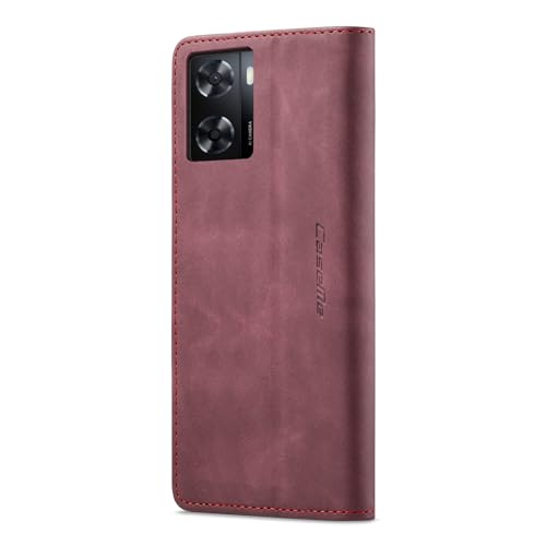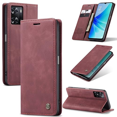 Generic - جراب جلد أفقي وقابل للطي ومتعدد الوظائف بتصميم محفظة مع فتحة للبطاقات ومسند متوافق موبايل اوبو A77 شبكة الجيل الرابع 4G/ A57 A57s/ A77s/ A57e (أحمر نبيذي)