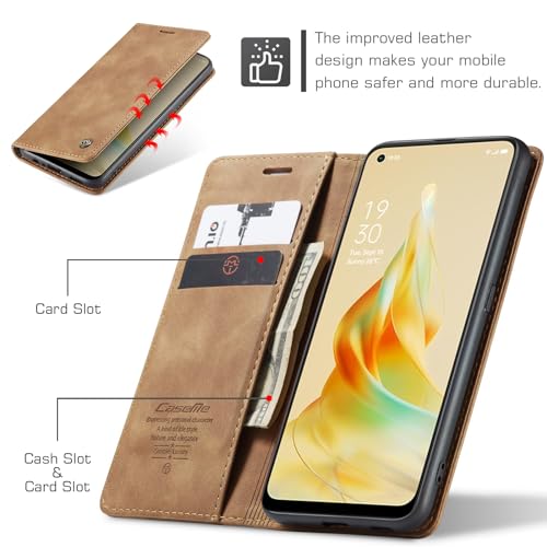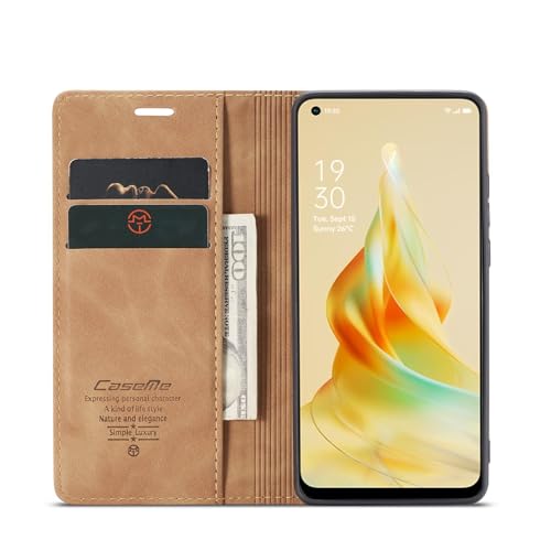 Generic - جراب حماية جلد فاخر قابل للطي بتصميم مبتكر وأنيق بشكل أفقي متعدد الوظائف مع حافظة كروت ومحفظة وحامل لموبايل اوبو رينو 8T شبكة الجيل الرابع 4G (لون بني)