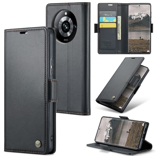 Generic - جراب هاتف متوافق مع جرابجراب فليب من الجلد الصناعي الفاخر وفتحة حامل للبطاقات متوافق مع Realme 11 Pro / Realme 11 Pro Plus (Black)