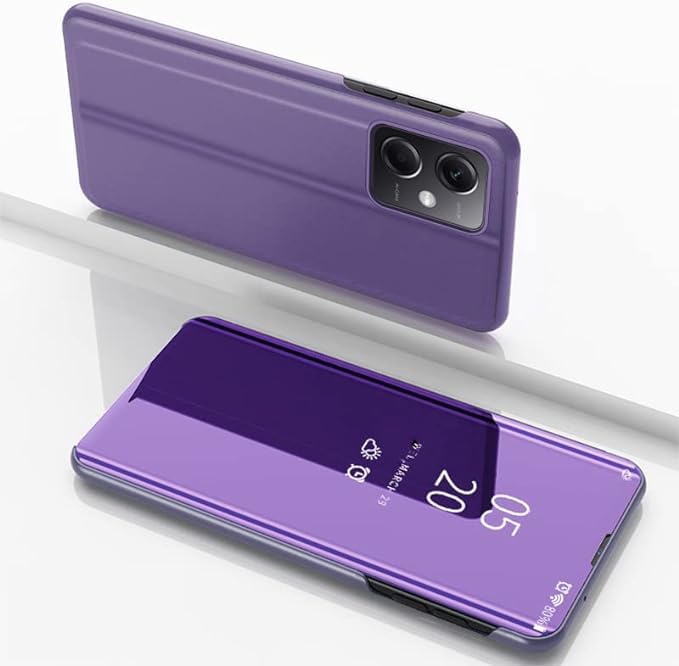 ELMO3EZZ - جراب حماية رفيع للغاية بتصميم عاكس شفاف قابل للطي مع مسند لموبايل ريدمي نوت 12 من الموعز البولي يوريثين بلون ارجواني لشاومي المعز