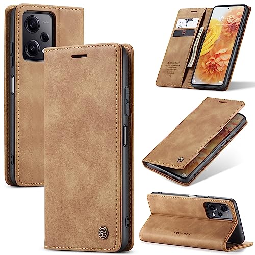 Generic - جراب جلد قابل للطي بتصميم أفقي متعدد الوظائف مزود بفتحة للبطاقات وحامل ومحفظة لموبايل ريدمي نوت 12 برو بلس شبكة الجيل الخامس 5G (12 برو بلس) (لون بني)، منقلب