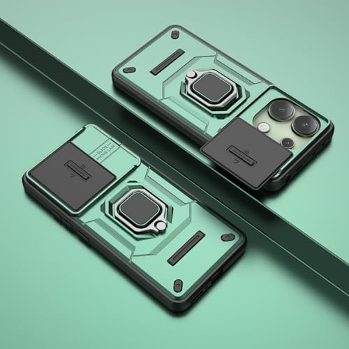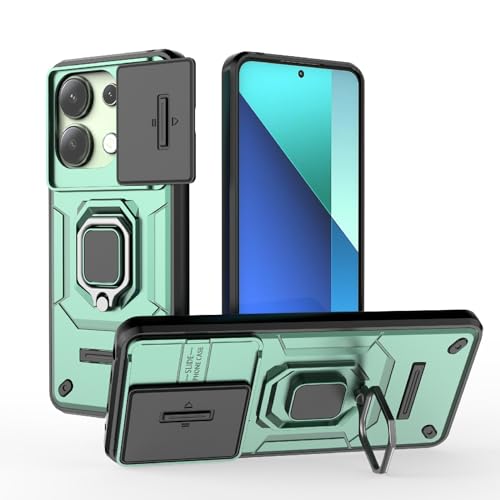 Generic - جراب حماية متوافق مع موبايل ريدمي نوت 13 شبكة الجيل الرابع 4G حلقة معدنية مقاومة للصدمات درع كاميرا منزلق 4G أخضر