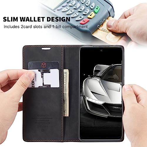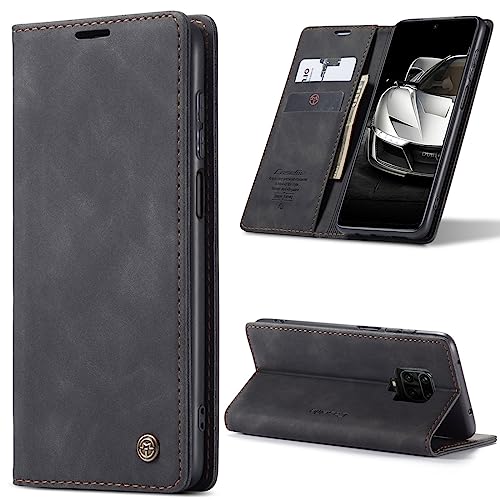 Year - يير جراب قابل للطي من جلد البولي يوريثين الفاخر مع فتحة بطاقة مغناطيسية وحامل عملي متوافق مع ريدمي نوت 9s / ريدمي نوت 9 برو (اسود)